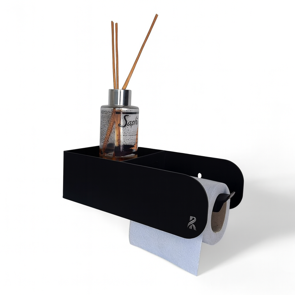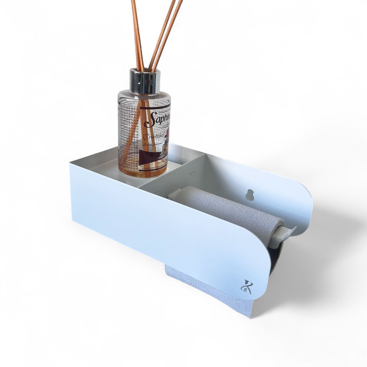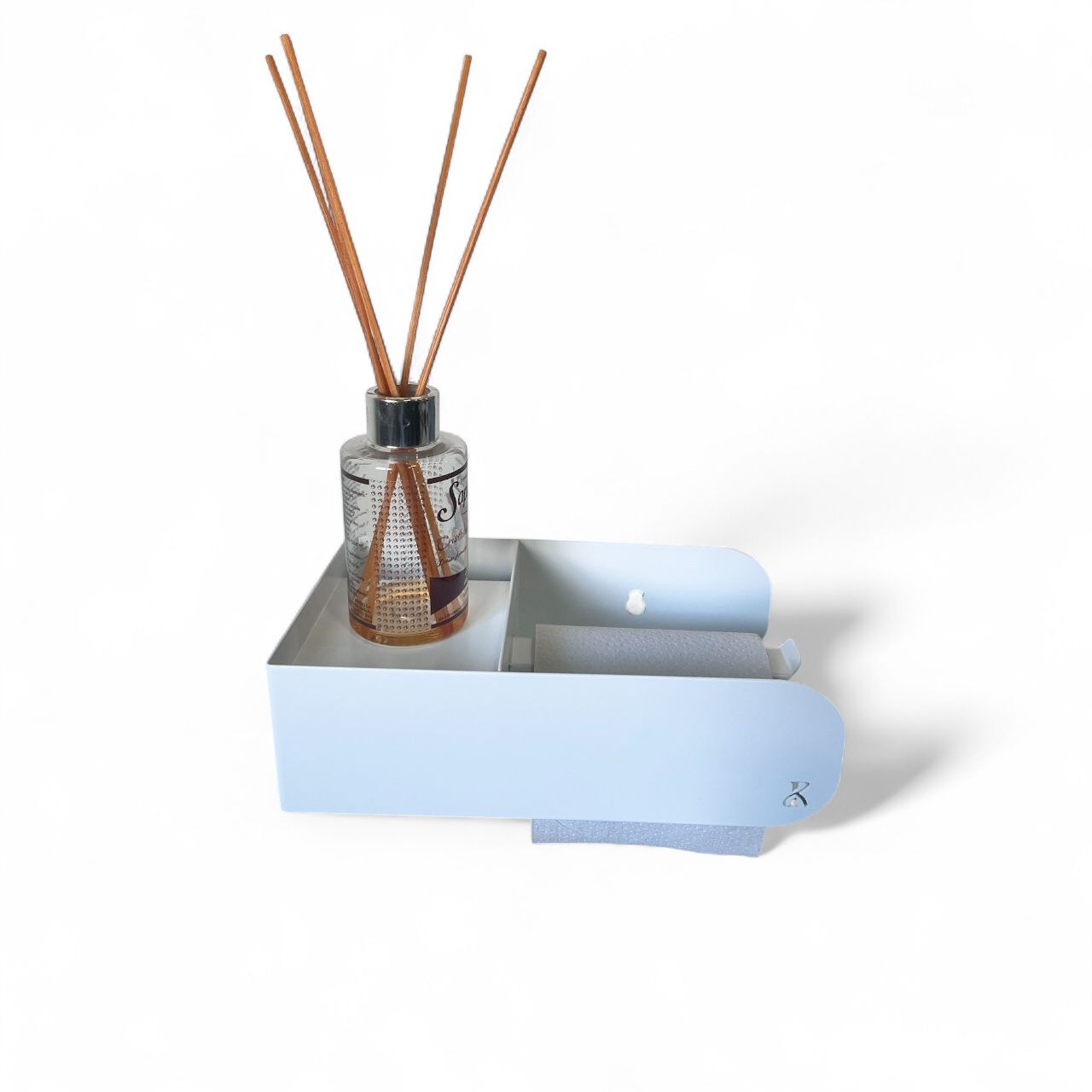 Diseño redondo en acero pintado al horno con repisa superior para apoyar objetos. Funcional, resistente y moderno.